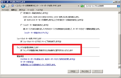このチェックは、 「キーボードを使いやすくします」にもあります。